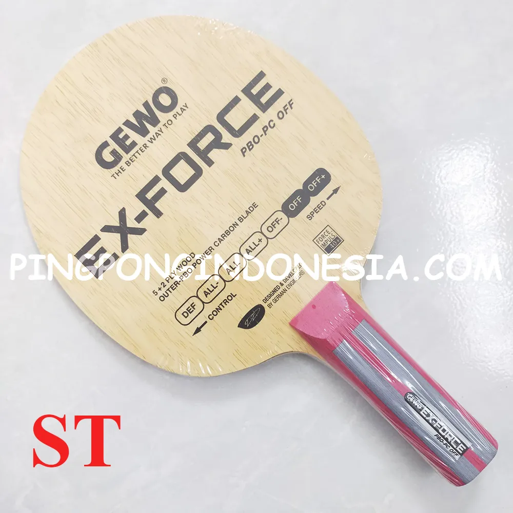 When it comes to hardness, precision and feeling, our Ex-Force PBO-PC Off blade simply has no equal. Unlike in the In-Force variant, the synthetic fibre of Ex-Force PBO-PC Off is not placed on the core ply but on the fine Limba outer ply which makes this blade a true weapon of offence. Hard topspins and counter-spins come easy thanks to the new PBO-PC fibre, while the special gluing technique gives the whole blade composition all the control you need even if combined with hard rubbers. A perfect combination of spin, feeling and speed for variable, point-winning attacking. Be the dominator with GEWO Ex-Force PBO-PC Off!