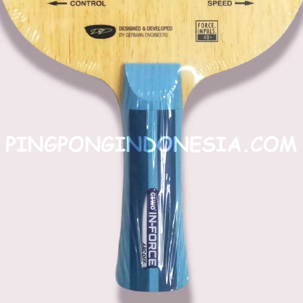 The Gewo In-Force ARC Off- is a true allrounder! Force ARC’s “little brother” comes with the synthetic fibre placed directly on the core ply, which provides for a more flexible and “tame” feel. The harmonic composition of the blade offers new possibilities and variability for spin-oriented attackers, OFF/ALL players and even active players using pips-out/anti-spin rubbers.