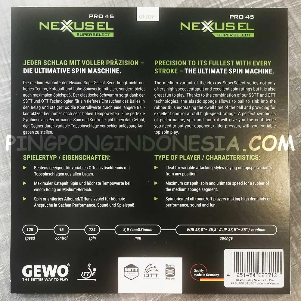 Precision to its fullest with every stroke – the ultimate spin machine. The medium variant of the Nexxus SuperSelect series not only offers high speed, catapult and excellent spin ratings but it is also great fun to play. Thanks to the combination of our SSTT and OTT technologies, the elastic sponge allows to ball to sink into the rubber thus increasing the dwell time of the ball and providing for excellent control at still high-speed ratings. A perfect symbiosis of performance, spin and control will give you the confidence you need to put your opponent under pressure with your variable top spin play.