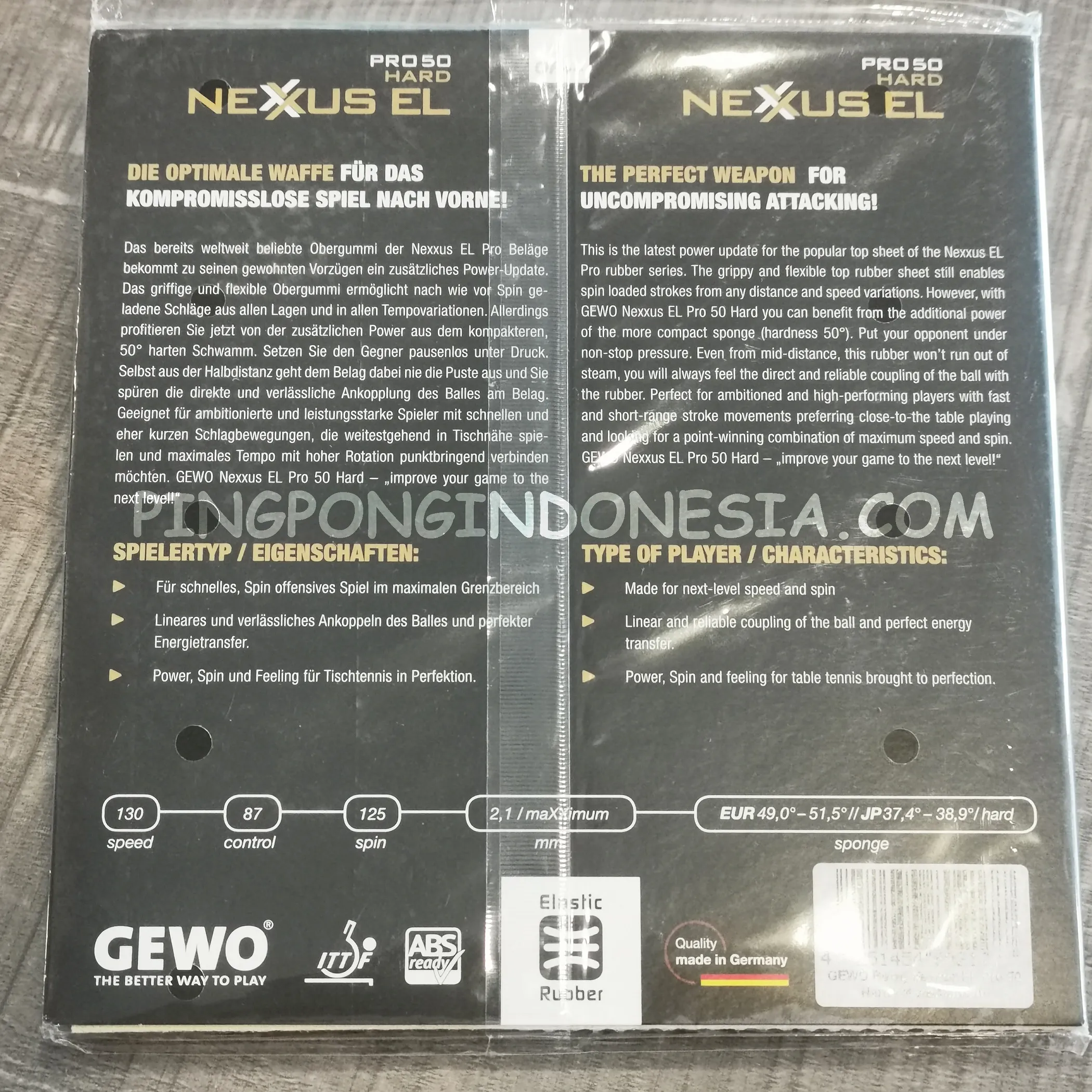 The perfect weapon for uncompromising attacking! This is the latest power update for the popular top sheet of the Nexxus EL Pro rubber series. The grippy and flexible top rubber sheet still enables spin loaded strokes from any distance and speed variations. However, with GEWO Nexxus EL Pro 50 Hard you can benefit from the additional power of the more compact sponge (hardness 50°). Put your opponent under non-stop pressure. Even from mid-distance, this rubber won’t run out of steam, you will always feel the direct and reliable coupling of the ball with the rubber. Perfect for ambitioned and high-performing players with fast and short-range stroke movements preferring close-to-the table playing and looking for a point-winning combination of maximum speed and spin. GEWO Nexxus EL Pro 50 Hard – “improve your game to the next level!”