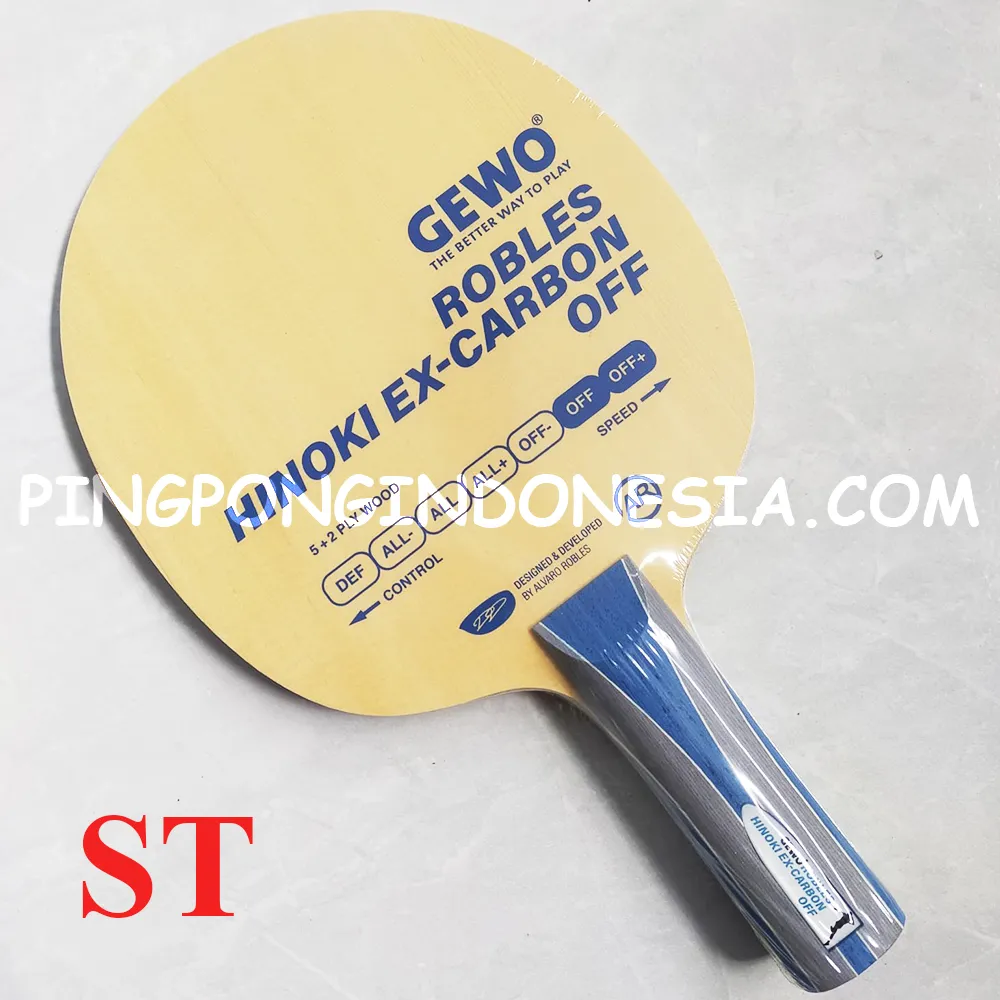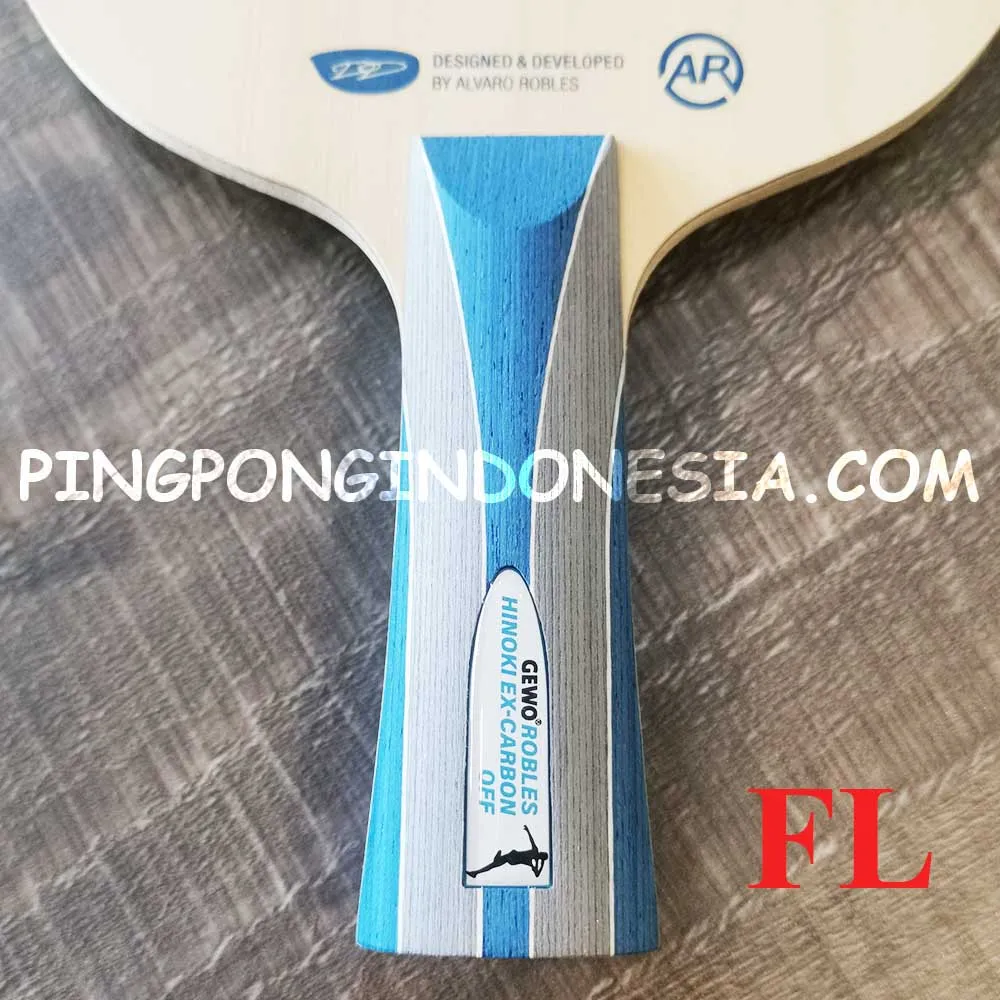 The blade is based on the Aruna Hinoki Carbon Off model; however, in our GEWO Robles Hinoki Ex-Carbon Off, we placed the synthetic fibre layer under the top ply and not directly on the core ply. The challenge was to choose the right gluing technique to ensure that the blade is not too hard. This modification provides for a flexible feel but, thanks to the carbon fibre, still produces the power you need to compete on the highest level.