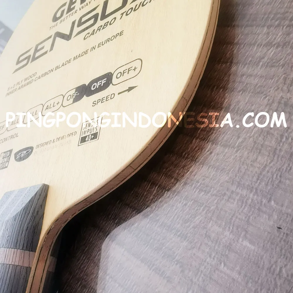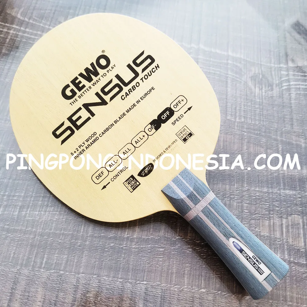 GEWO Sensus Carbo Touch provides for a new dimension of feel. Thanks to its special ply structure, the blade is generally softer than other carbon blades, but still has the typical carbon features such as lightness, dynamics and flexibility. Gewo Sensus Carbo Touch is also the best choice for players who like the advantages of a synthetic fiber-reinforced blade, but have problems with the rather hard and direct touch of other carbon blades. Gewo Sensus Carbo Touch – Aramid Carbon Power with all-wood feeling.