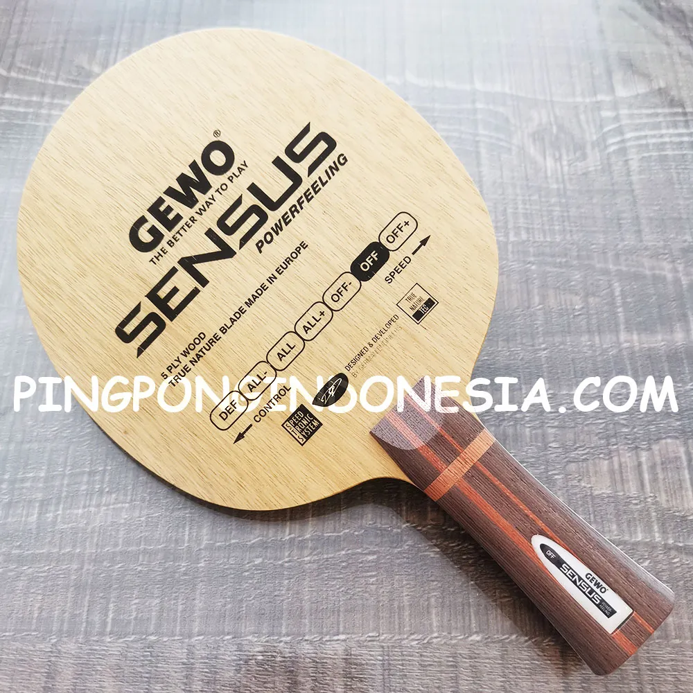 The 5-ply GEWO Sensus Powerfeeling offensive blade is ideal for any playing situation. It provides for excellent feedback and enables both controlled topspins and direct attacking shots. Absorbs the speed of your opponent’s ball. Great for blocking. Special features: The perfectly balanced blade is traditionally made in Europe – however, the special “Japanese Film Glue” is used for the first time. This glue has an impact on the hardness and speed of the blade: It is faster and slightly harder compared to blades made using traditional glues. Power and feeling united in one blade. Natural high-end product (True Nature Tec)!